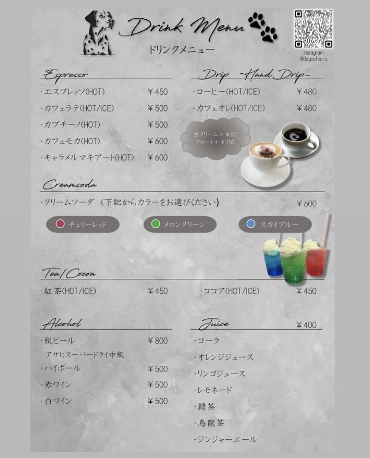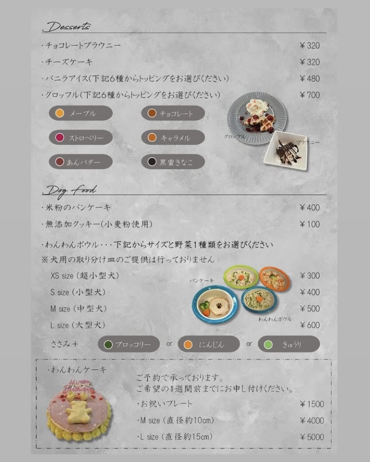 If you’re in the mood for snacks, the フライドポテト (fried potatoes) at ¥500 make for a delicious accompaniment, delivering that irresistible crunch with each bite. But let’s not forget about your furry friend! DogCafeUru offers a special わんわんプレート – an anniversary plate made especially for dogs, available for pre-order at ¥1,500. This thoughtful touch showcases the cafe's commitment to catering to your pet’s culinary desires.
